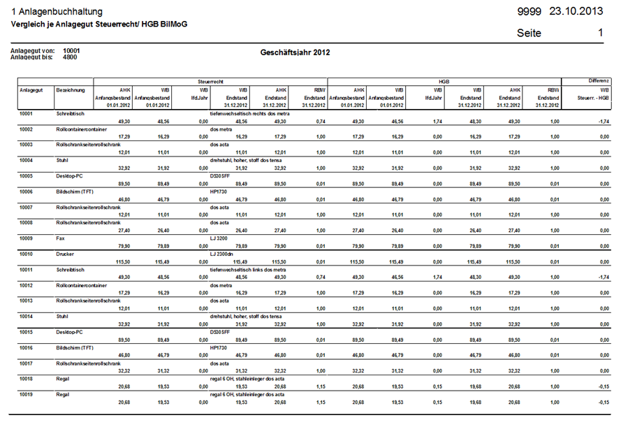 Für den Vergleich von steuerrechtlichen und handelsrechtlichen Abschreibungen stehen verschiedene Auswertungen zur Verfügung.