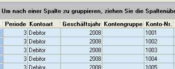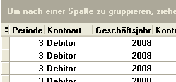 Gruppieren Markieren Sie eine Spaltenüberschrift und ziehen Sie das Feld bei gedrückter linker Maustaste in den Gruppierungsbereich.