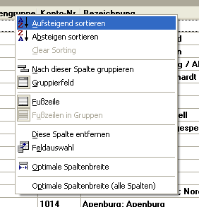 Wenn Sie auf einer Kopfzeile die rechte Maustaste betätigen, erreichen Sie das Kontextmenü.